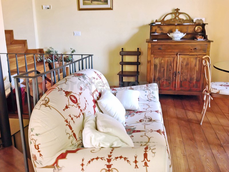 ? Primo piano: ampio soggiorno con cucina a vista (21 mq) e bagno di servizio nel piano ammezzato (1,3 mq), con affaccio su terrazzino panoramico di 10 mq.