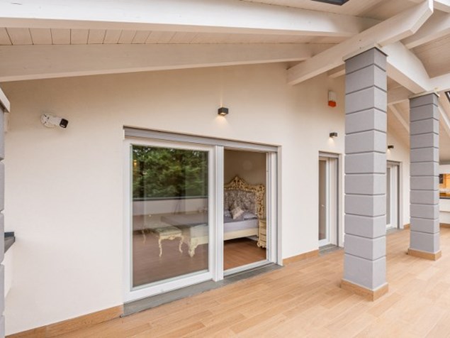 Questa raffinata dimora unifamiliare, sempre più green, sostenibile e innovativa, è stata concepita in funzione del nuovo vivere contemporaneo. Gli spazi evocano atmosfere sofisticate che assicurano il privilegio di uno stile di vita esclusivo all'insegna della comodità e dell'efficienza. Ogni dettaglio, dalla scelta dei materiali alla progettazione degli spazi è stato studiato per offrire il massimo del benessere e della privacy. Il verde, ben curato, del giardino privato si fonde in armonia perfetta con l'eleganza architettonica degli esterni e la funzionalità degli interni. La sicurezza è garantita da sistemi di tecnologia avanzata. Gli spazi interni sono distribuiti su più livelli, con zone appropriatamente distinte le cui caratteristiche principali si possono riassumere come segue: -Piano Seminterrato: mq 235 totali di cui 155 destinati a ampio locale taverna, camera, bagno, locale office, locali tecnici oltre 5 posti auto coperti per circa 80 mq. -Piano Rialzato: mq 200 coperti costituiti da un'ampia e lussuosa zona living con cucina abitabile parzialmente separata, tre camere, due bagni, una cabina armadio e un ripostiglio. Terrazzo al piano per 80 mq circa. -Piano Primo: mq 130 coperti composti da ampio disimpegno, due suite matrimoniali ognuna con proprio bagno dedicato e cabina armadio, palestra. Terrazzo al piano mq 60 circa. Completa la proprietà lo spazio esterno sui quattro lati, per circa 500 mq.