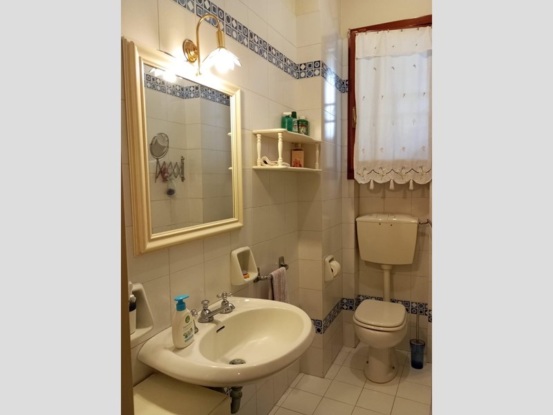 Si entra in un ampio ingresso da cui si accede a un salone con terrazza grande coperta, poi stanza pranzo e cucina separata anch'essa con terrazzo. Entrando poi nel disimpegno notte si trovano un'ampia camera camere, un'altra camera matrimoniale e una singola comunque spaziosa. I bagni sono due, entrambi con finestra, uno più piccolo con doccia, uno più grande con vasca.