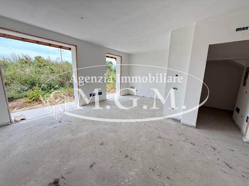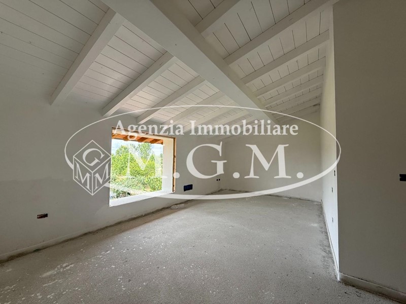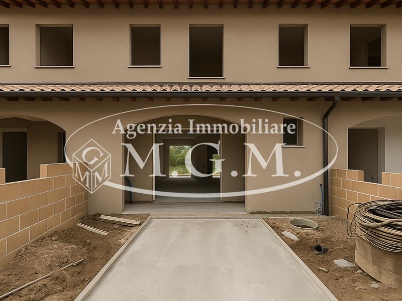 Zona residenziale vicino parcheggi e servi a ridosso di terreno agricolo quindi immersa nel verde VILLETTA a schiera molto grande di Mq. 145 oltre mansarda di mq. 50, di Nuova costruzione con grande giardino di ca. mq. 125.