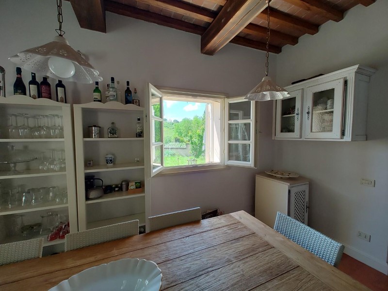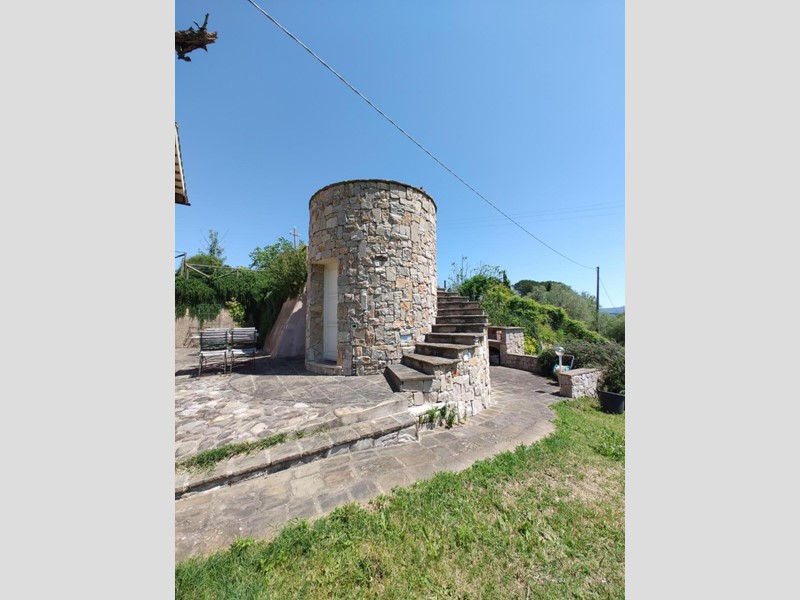 COLLINE DI COLOGNOLE - Sulla cima di una collina che domina la campagna circostante, casale interamente ristrutturato circondato da giardino e terreno di circa un ettaro. L'immobile si sviluppa su due livelli e si compone al piano terra di una zona giorno open-space composta da soggiorno con caratteristico camino in pietra, cucina-pranzo molto luminosa grazie alle quattro finestre e ripostiglio esterno; salendo le belle scale in legno di quercia raggiungiamo il disimpegno notte di accesso alle due camere matrimoniali che affacciano su un loggiato con splendida vista panoramica e al bagno con doccia e finestra. La proprietà inoltre comprende una caratteristica struttura a torre con terrazza sovrastante che contiene un locale lavanderia e una zona barbecue/forno ideale per cene all'aria aperta. L'Immobile curato in tutti i particolari e rifinito con materiali di pregio è ideale per chi ama vivere immerso nel verde ma non isolato.