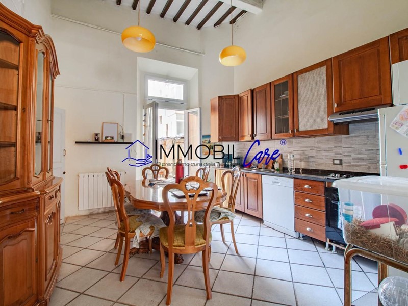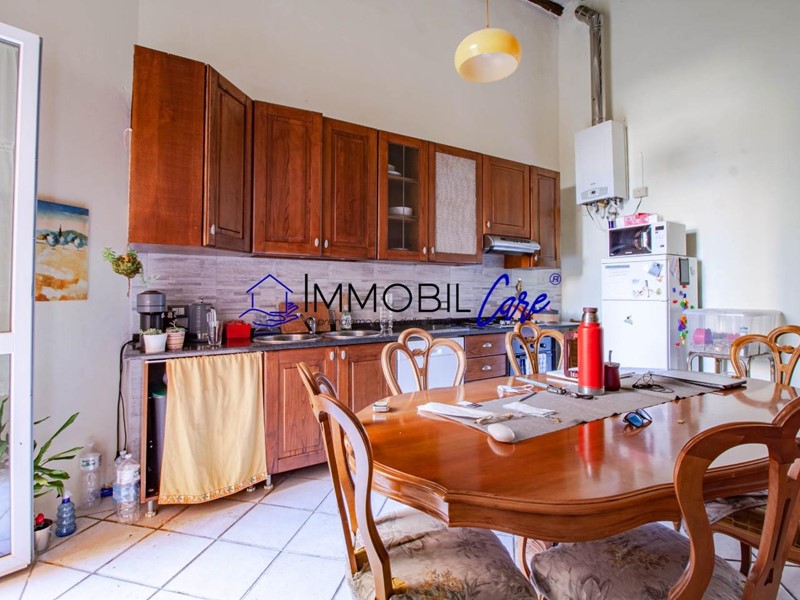 L’immobile si apre su un grande ingresso che conduce a una spaziosa sala, separata da una comoda cucina abitabile con accesso diretto a una chiostra privata, perfetta per momenti di relax o per l’organizzazione di una zona verde riservata.