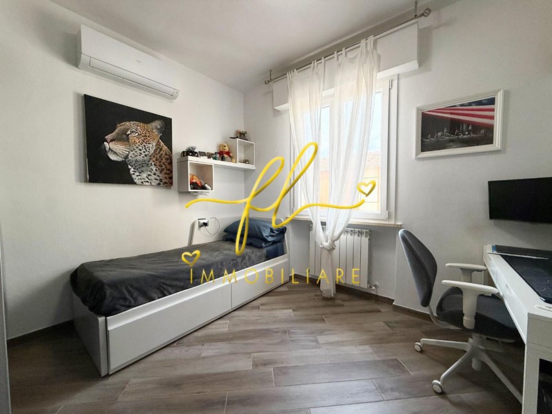 L'appartamento è composto da un ampia zona giorno molto luminosa da cui si accede al balcone, proseguendo troviamo tre camere di cui una matrimoniale una doppia e una singola, un ampio ripostiglio e il bagno. A completare l'immobile abbiamo un terreno ad uso corte in proprietà esclusiva posto nella parte retrostante del fabbricato di circa 30mq ed un locale ad uso sgombero di circa 50mq. L'appartamento è provvisto di condizionatori caldo freddo programmabili da remoto e riscaldamento termoautonomo a metano con caldaia sostituita nel 2020, le spese condominiali sono di circa 25€ il mese.