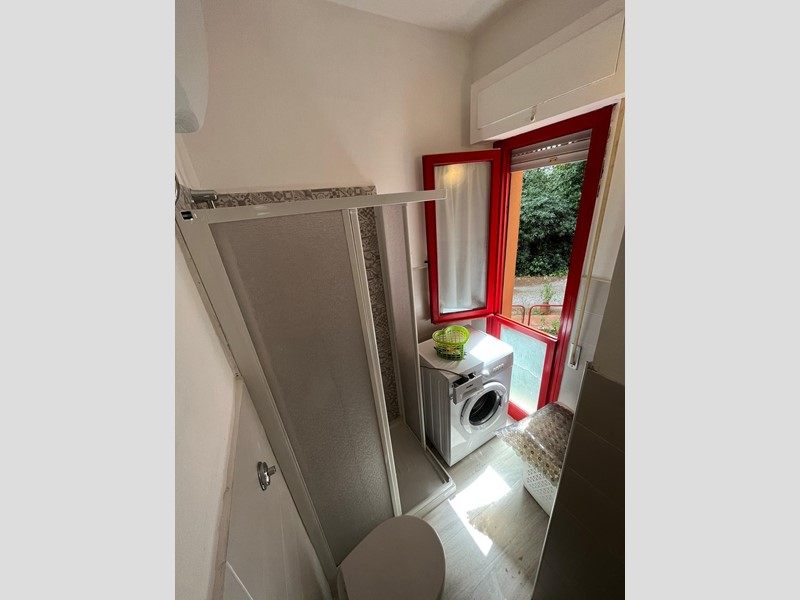 Completa il tutto un giardino attrezzato con tavolo e sedie a cui si accede tramite pochi scalini dalla scala di accesso condominiale.
