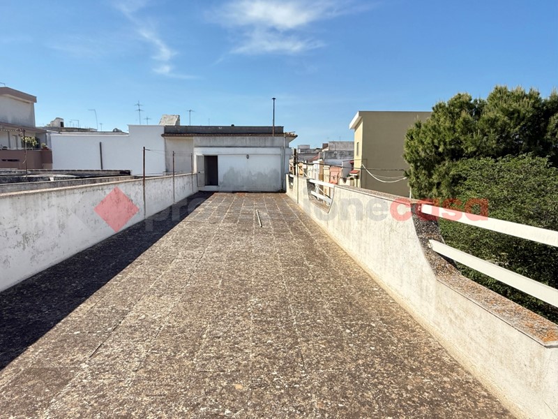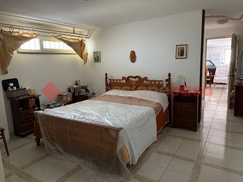 Monteparano - via Trento casa indipendente composta da piano terra uso garage/deposito di circa 90 mq con doppio accesso da ortale privato e dalla strada con passo carrabile; primo piano: ingresso/salottino, ampia cucina/soggiorno, camera da letto, cameretta, bagno. Lastrico solare di proprietà. Buone condizioni interne: pavimentazione in ceramica, infissi in alluminio con doppio vetro, termoautonomo. Libero.