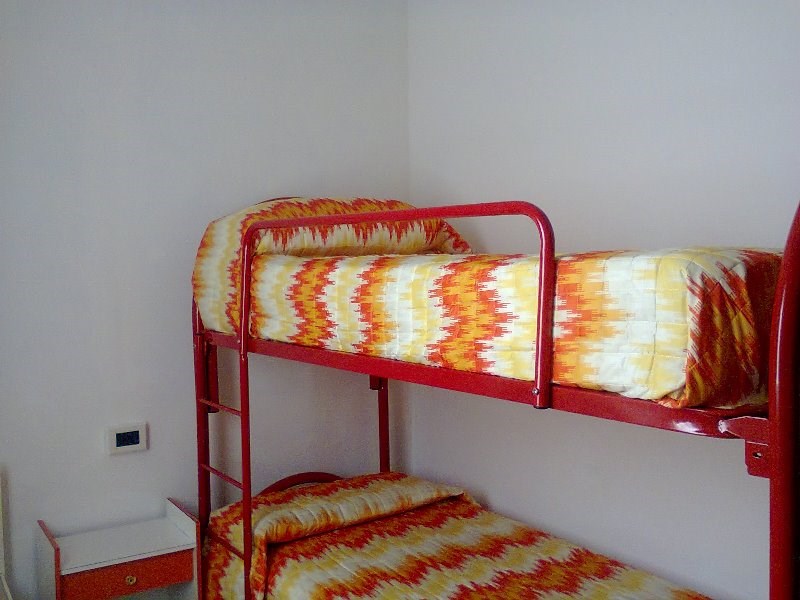 Piccola palazzina a 150 mt dal mare. L’appartamento al 1° piano è composto da soggiorno con divano letto matrimoniale e angolo cottura, una camera matrimoniale, una camera con letto a castello, bagno finestrato con box-doccia, piccolo balcone.