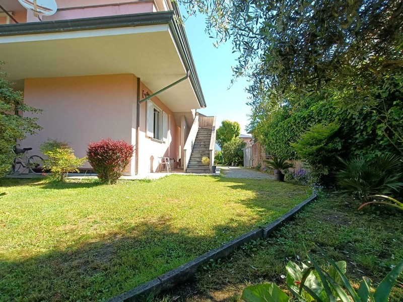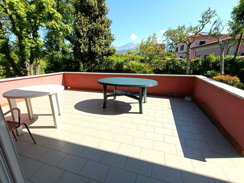 MARINA DI MASSA - In zona defilata dal centro e a circa 700 metri dal mare si vende casa singola composta da due unità immobiliari per un totale di circa mq. 180. PIANO RIALZATO - ingresso soggiorno, cucina abitabile con uscita su terrazza di circa 25 mq, camera matrimoniale, camera doppia e bagno. PIANO PRIMO - con scala esterna completamente indipendente, ingresso soggiorno con balcone, cucina abitabile con balcone., camera matrimoniale, camera doppia e bagno. A corredo giardino esclusivo sui quattro lati di circa 500 mq. L immobile in buono stato di manutenzione é accessoriato di impianto fotovoltaico, doppi vetri e aria condizionata. Posti auto.