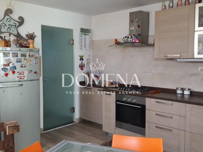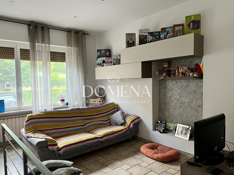 L'appartamento si sviluppa su due piani: al piano terra rialzato troviamo ampio soggiorno, cucina abitabile, due camere matrimoniali da una delle quali si accede ad una terrazzina coperta con attacco acqua ed uno spazioso bagno finestrato; da una scala interna situata nel soggiorno è possibile raggiungere il piano sottostante dove si trova una taverna al momento adibita a seconda cucina, una lavanderia ed un garage.