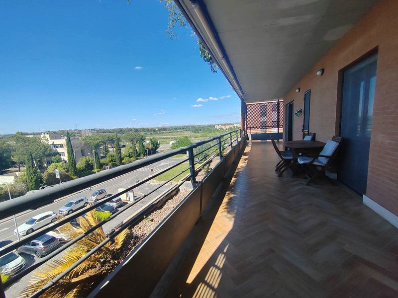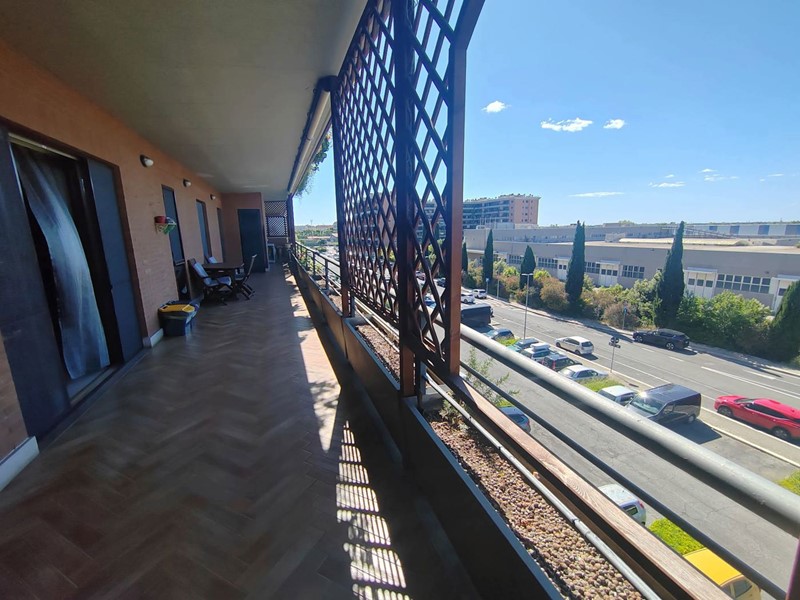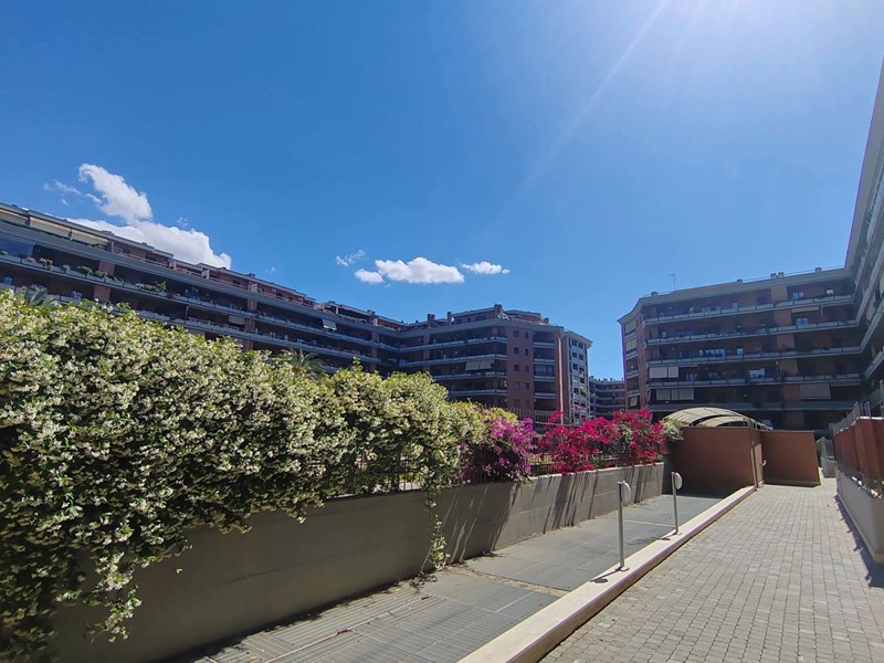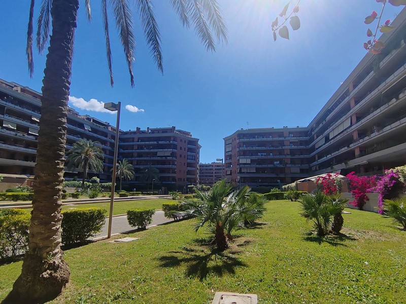 Fiumicino Parco Leonardo, complesso Le Pleiadi, in contesto residenziale adatto a famiglie che cercano tranquillità, servizi e collegamenti, ci troviamo in un complesso del 2003 con all'interno un gradevole giardino condominiale con fontane, circondato da aree verdi, ti proponiamo un appartamento in palazzina con ascensore, ristrutturato e rifinito, piano alto, affaccio aperto, di ampia metratura residenziale, composto da salone, cucinotto, 3 camere, disimpegno, 2 bagni (entrambi c/finestra e doccia), ampio terrazzo mq 55 accessibile da tutti i locali con ripostigli esterni, comodissimo e capiente box auto mq 24;