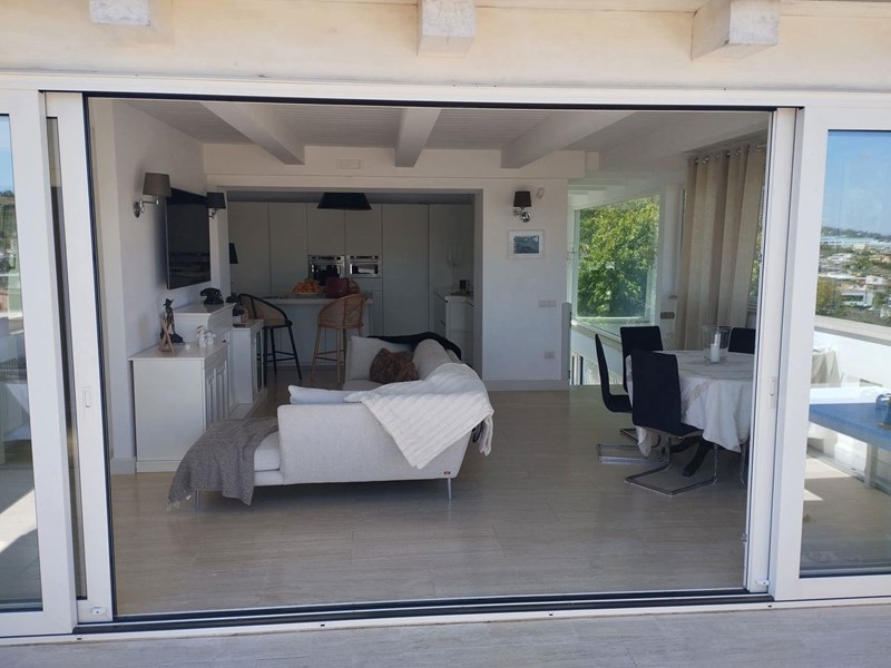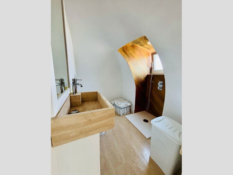 - Secondo Livello: un grande zona living con salone e cucina a vista, che si apre su un terrazzo di 45 mq, ideale per cene o momenti di relax.