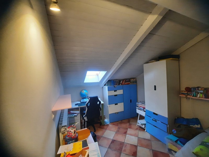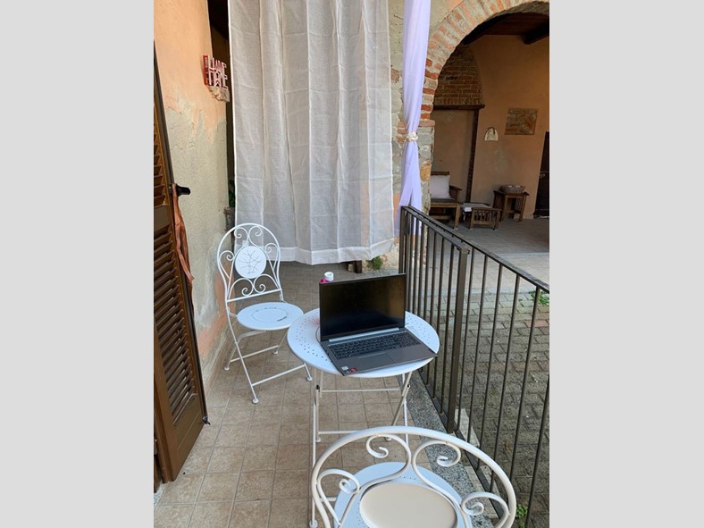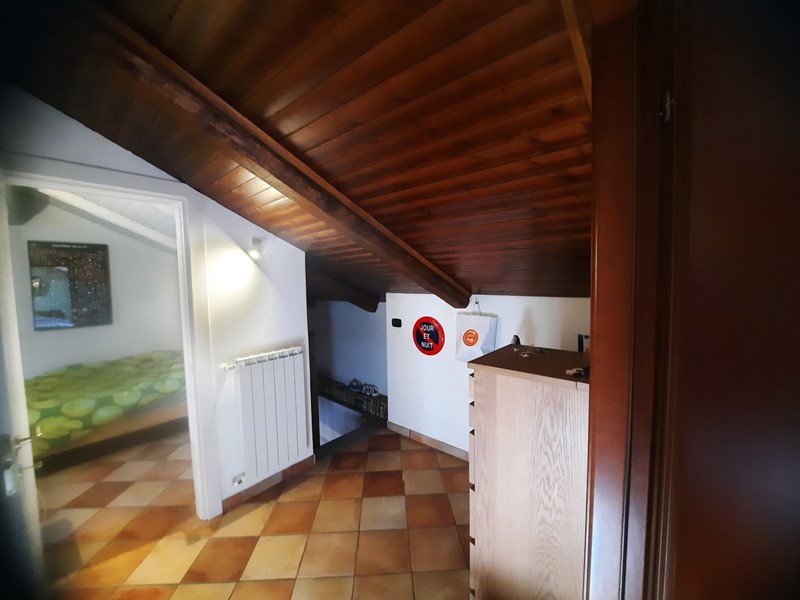 L'alloggio si compone di una cantina al piano terra, un disimpegno/ ingresso con balconcino che affaccia sul cortile interno al primo piano, un luminoso soggiorno con cucina, zona pranzo, bagno e balcone al secondo piano e un locale sottotetto rifinito con tetto in legno al terzo piano. Ogni piano è collegato da una scala interna in legno. Il complesso, composto da 8 unità abitative, è stato ristrutturato nel 2007.