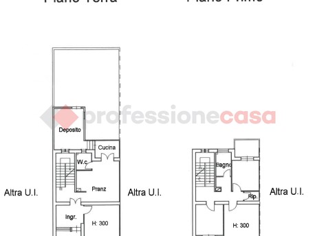 L'appartamento si compone su due livelli. Il piano terra offre un ampio soggiorno con camino, cucinino collegato al deposito che porta al giardino, camera da letto e bagno; il primo offre tre camere da letto spaziose e bagno.