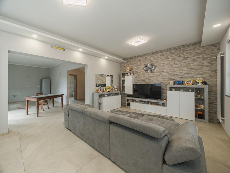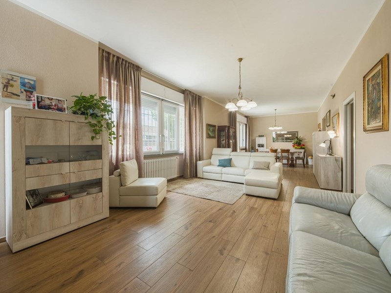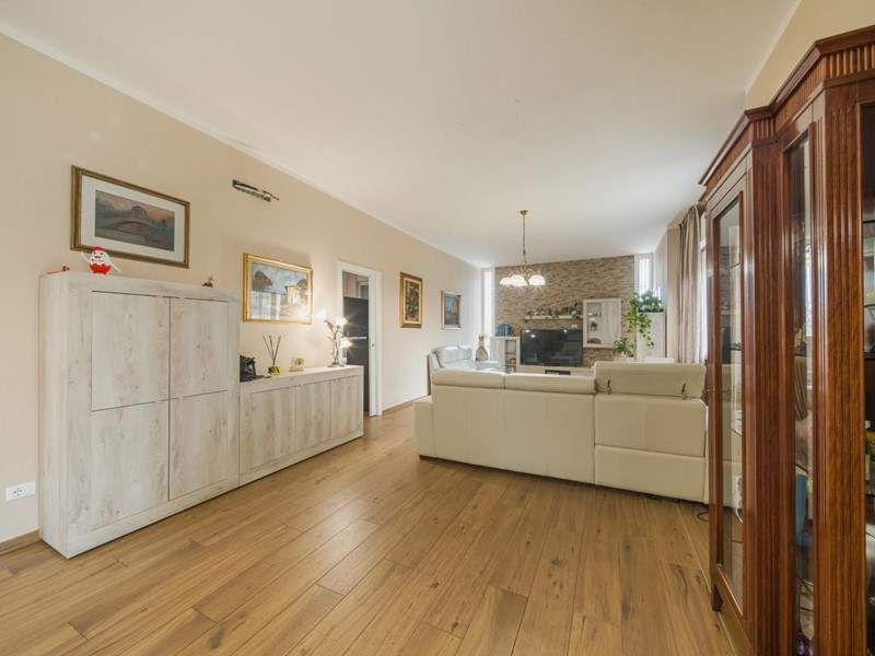 Appartamento piano terra di circa 185 mq: terrazzo, grande soggiorno luminoso, cucina abitabile, camera matrimoniale, 2 bagni, cantina/taverna con camino, ripostiglio/lavanderia, locale di servizio /cantina.