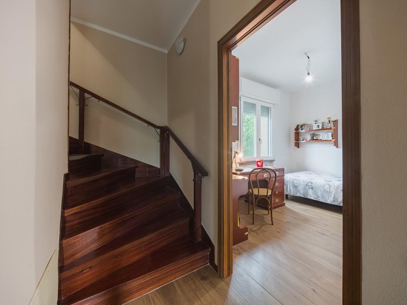 Appartamento primo piano di circa 185 mq: loggiato, scala interna in legno, soggiorno, cucina abitabile, terrazzo, 3 camere da letto, 2 bagni finestrati, soffitta, cantina.