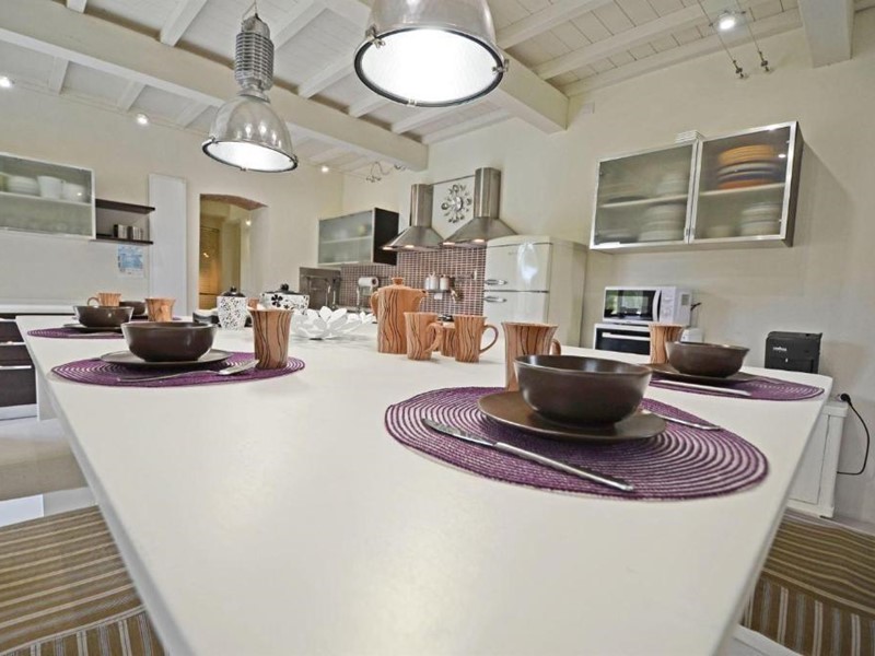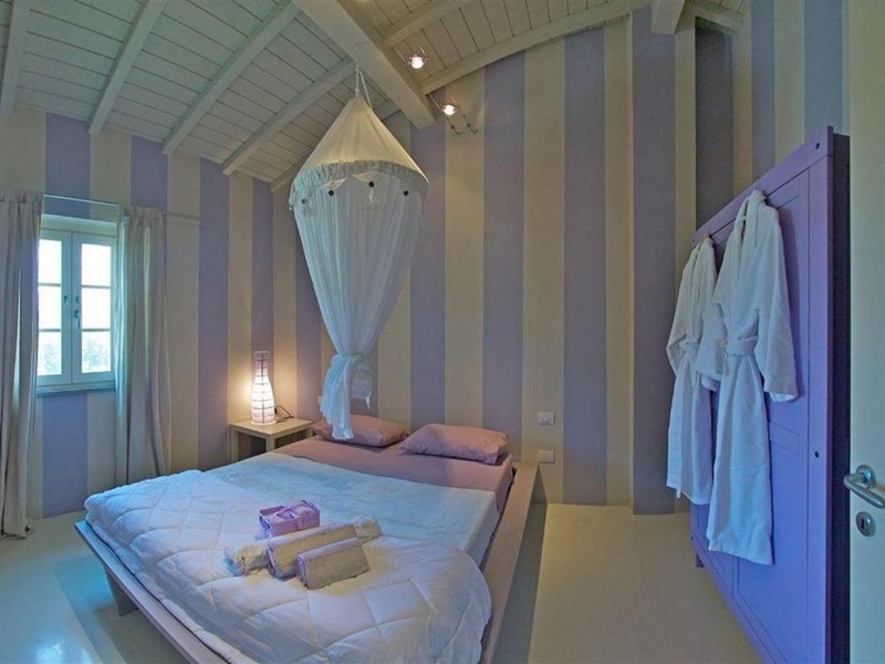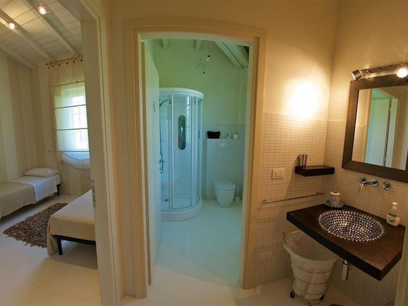 - 5 camere da letto ben arredate: 4 al primo piano con bagno privato, 1 con camino al piano terra con bagno esterno