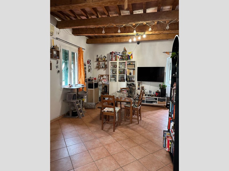 Appartamento luminoso in buone condizioni con travi a vista, rifinito con pavimentazione uniforme in ogni ambiente.