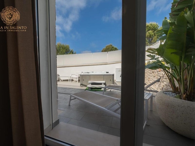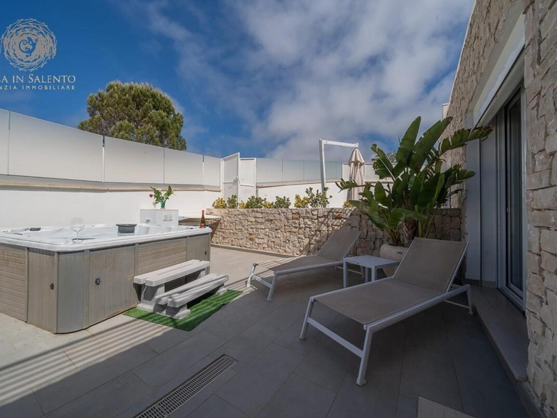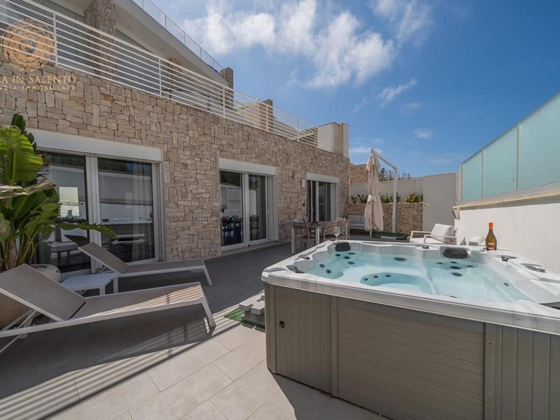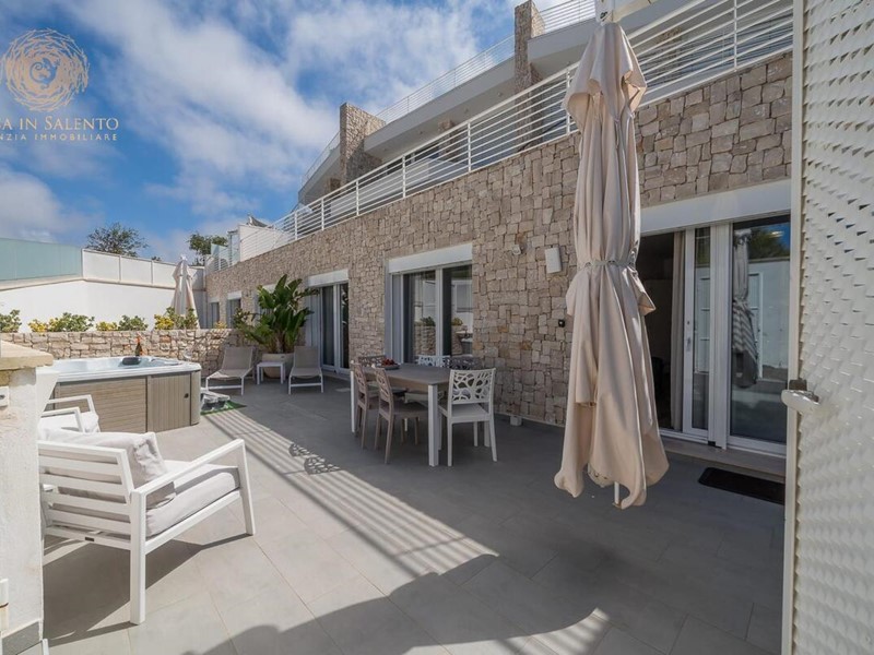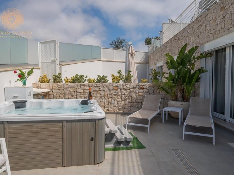 L’alloggio, si sviluppa a piano terra dove troviamo un’ampia area living con cucina e soggiorno, due camere da letto, disimpegno, il bagno completo con doccia ed uno spazioso esterno dove e’ presente la vasca idromassaggio (jacuzzi) ed un piacevole cortile esterno molto utile per godere dei bei tramonti salentini. La vasca idromassaggio e’ sia con acqua fredda, che calda e puo’ comprendere fino a 4 persone adulte e due bambini. La vasca idromassaggio e’ sia con acqua fredda, che calda e puo’ comprendere fino a 4 persone adulte e due bambini. L’abitazione dispone di tre climatizzatori e di antenna TV singola, di lavatrice e lavastoviglie, zanzariere e di un posto auto privato posto all’interno del complesso completamente recintato. L’immobile dista cinque minuti a piedi dal lungomare di Leuca e circa 200 metri da Punta Ristola. L’immobile sarà venduto completo di arredamento interno, esterno e tv. Ideale per famiglie e per chi cerca un rifugio di pace e bellezza, l’immobile offre anche un alto potenziale di redditività nel settore delle locazioni di lusso. C.E.: “A1”. (ID. 369A Minerva)
