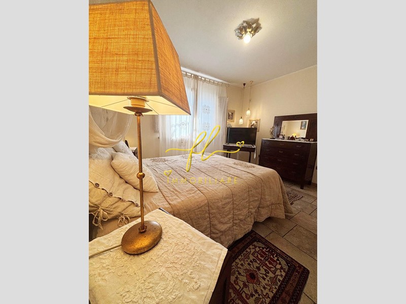 Accessibile da scala esterna indipendente, l’appartamento al piano superiore si compone di una spaziosa zona giorno con salotto e cucina, due camere matrimoniali, e un grande bagno finestrato con vasca.