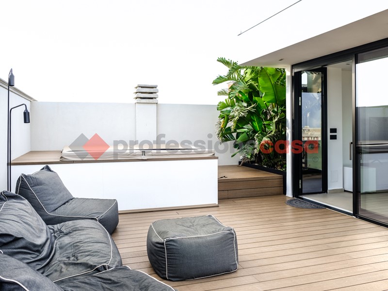 La zona notte è caratterizzata una camera matrimoniale, due camere aggiuntive ideali per famiglia o studio e due bagni moderni e funzionali. Una scala interna conduce al sesto piano, dove troverete un esclusivo terrazzo di pertinenza, perfetto per momenti di relax o convivialità, con una vista mozzafiato sulla città.