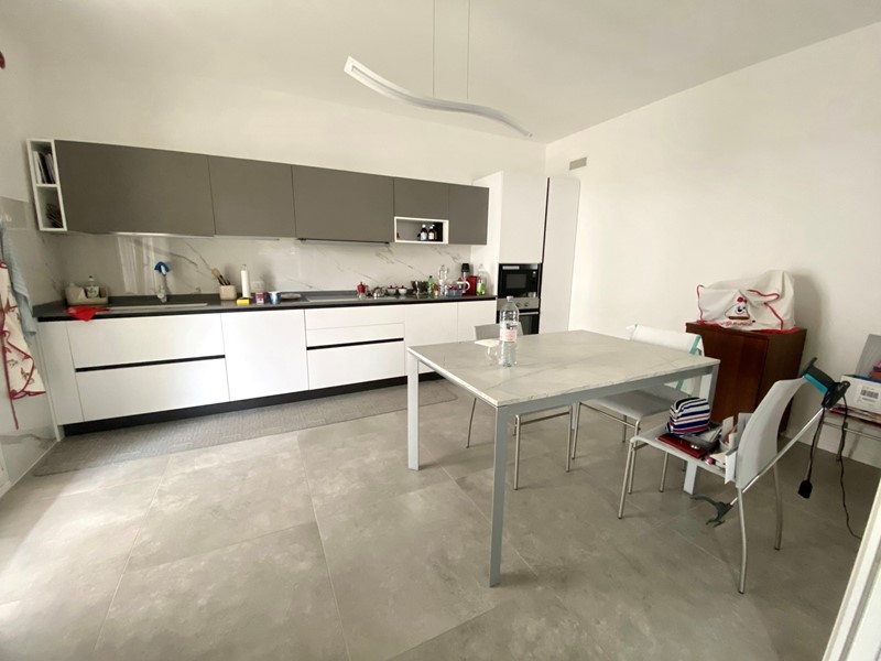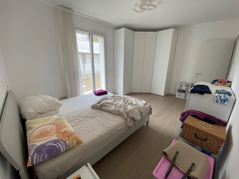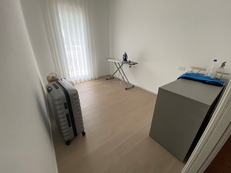 L'abitazione si compone di un ampio e luminoso soggiorno, caratterizzato da una grande vetrata che affaccia sul verde, e una cucina separata, anch'essa completamente attrezzata. Due camere da letto ed un'ulteriore stanza.