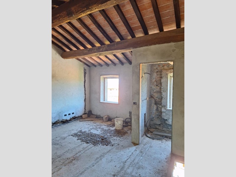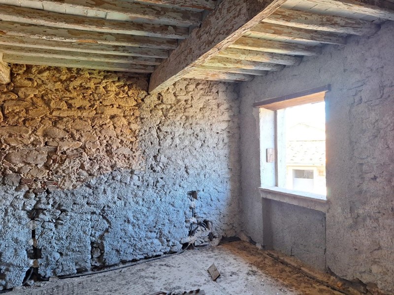 SAN GINESE, proponiamo in vendita terratetto di 150 mq, AL GREZZO, composto da: ingresso, sala, cucina abitabile con camino, ripostiglio e bagno; al primo piano ampio disimpegno, una camera matrimoniale e bagno; al secondo piano due ampi vani mansardati. Corredato da piccolo annesso e due posti auto adiacenti all'abitazione. Tetto nuovo con isolante e guaina.
