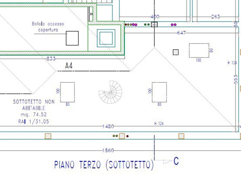 Appartamento di 4 locali per complessivi 175 mq. commerciali circa disposto su due livelli (secondo e terzo abitativo) con doppi servizi. Tramite vano ascensore che sbarca al piano secondo, accediamo all'abitazione così composta: ingresso sulla zona giorno con cucina a vista con accesso diretto al terrazzino di facciata, doppi servizi e n. 2 camere da letto; tramite la scala interna accediamo al secondo livello (p. 3° attico) di ampie dimensioni adibibile a terza camera/locale hobby con ulteriore locale di servizio e terrazzo.