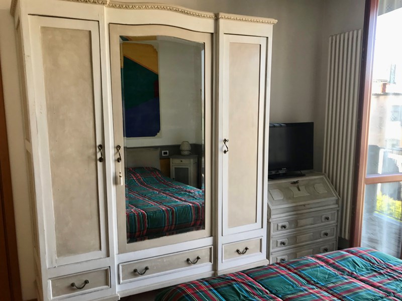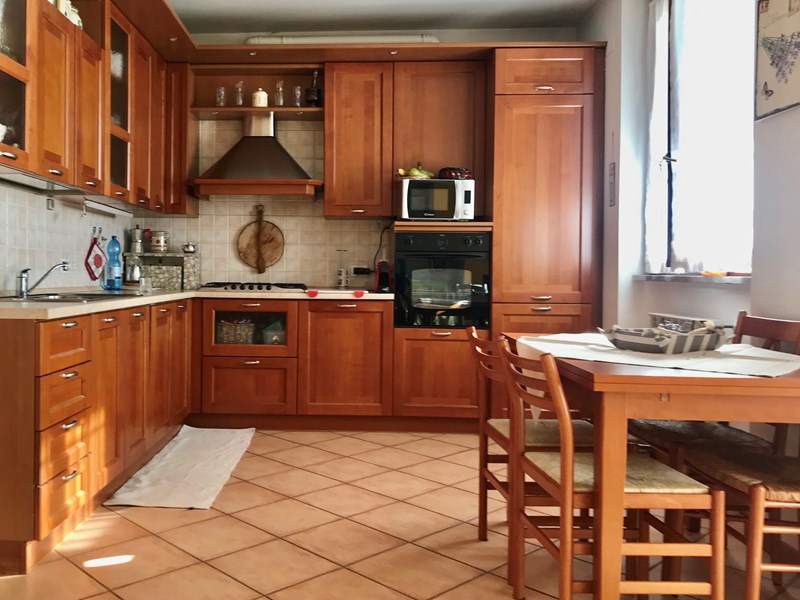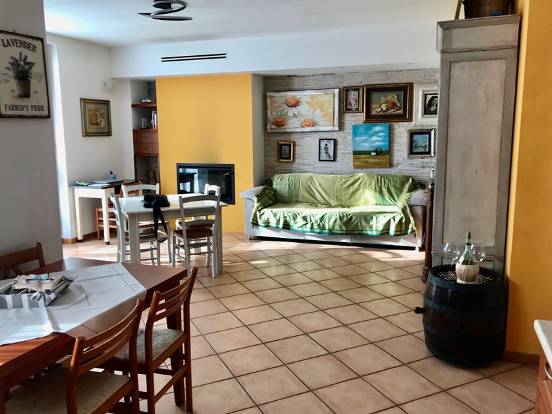 All'interno, l'appartamento si apre su un soggiorno accogliente con un camino a vetri chiusi, perfetto per riscaldarsi durante le giornate invernali. La cucina a vista, spaziosa e ben progettata, è ideale per chi ama cucinare in compagnia. Dal disimpegno si accede alla zona notte, dove troviamo una camera matrimoniale padronale, una seconda camera singola e un bagno finestrato con vasca e doccia.