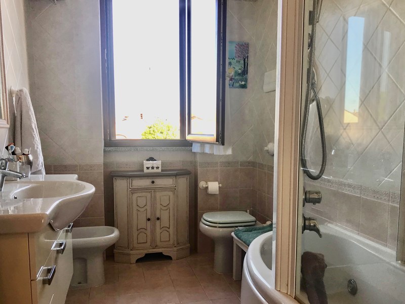 Al piano interrato, l'ampio garage di 43 mq offre ampio spazio per due automobili e la possibilità di realizzare una lavanderia. L'orientamento della villa e la sua posizione ne fanno una soluzione perfetta per chi cerca tranquillità e comfort, senza rinunciare alla praticità. Se hai altre domande o vuoi sapere di più, contattami!