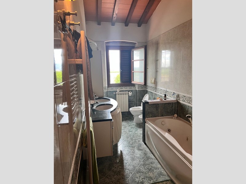 Questa proprietà, ristrutturata nel 2002, si presenta in ottimo stato e offre 6 locali disposti su due piani. Al piano terra troviamo un ampio soggiorno, cucina pranzo, bagno e vano pluriuso, comodo sia per uso salotto o camera/studio. Al piano primo la zona notte è composta da due camere matrimoniali, una camera doppia, ripostiglio ed un grande bagno con vasca e doccia. Ottimi finiture in stile rustico toscano.