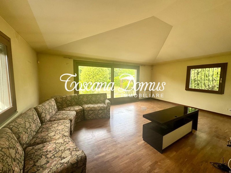 Questa elegante proprietà, situata al piano terra, vanta una superficie di 340 mq e si sviluppa su due livelli, di cui il piano rialzato dove troviamo grande salone con vetrata che affaccia nel verde, cucina ampia, quattro camere molto grandi, due bagni, piano sottostante composto da lavanderia, taverna, studio e terzo bagno. Circondata da giardino privato di 600 mq con possibilita' di piscina privata.
