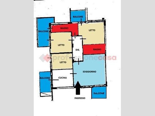 L'immobile è composto da ingresso con ampio salone a vista , cucina abitabile , disimpegno , tre camere da letto e due bagni . Tripla esposizione su quattro ampi e comodi balconi.