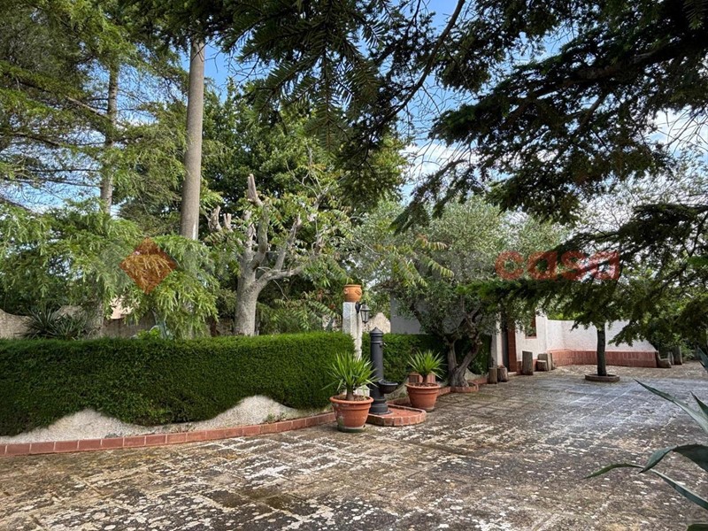Martina Franca - Contrada Franzullo - Zona San Paolo VI - proponiamo villa indipendente sita su lotto di 2500 mq di terreno. La villa, in ottime condizioni manutentive, si sviluppa su un unico livello ed è circondata da uno splendido giardino pavimentato e curato, adornato da piante ornamentali ed alberi da frutto, una porzione adibita ad orto e sul resto si apre il terreno alberato. La costruzione si apre su un patio da cui si accede a cucina con camino, due ampie camere, bagno; secondo accesso con soggiornino con angolo cottura, camera, cameretta e bagno. Inferriate di fattura artigianale sono state apposte a tutte le finestre e porte/finestre, cancello in ferro battuto a chiusura del vialetto d'accesso. Infissi in alluminio con doppio vetro. Tre cisterne per la raccolta d'acqua.