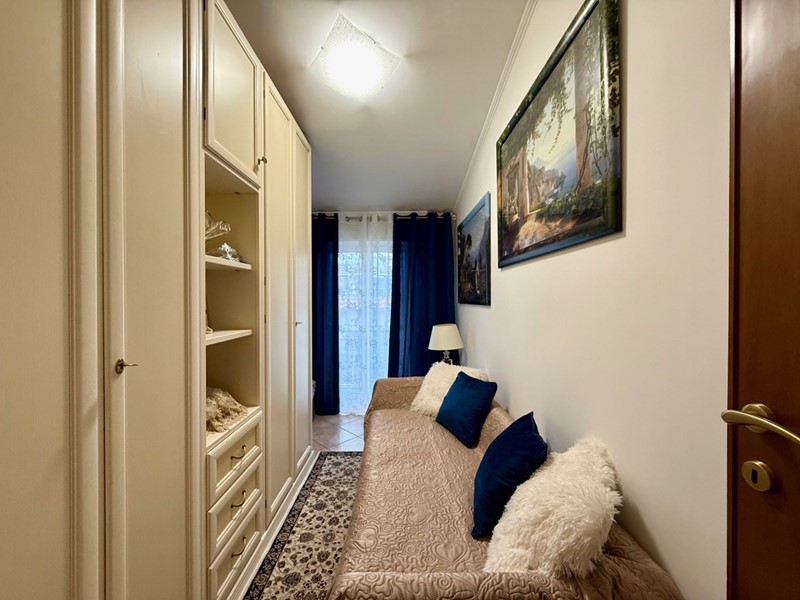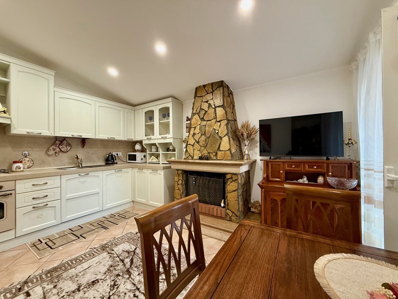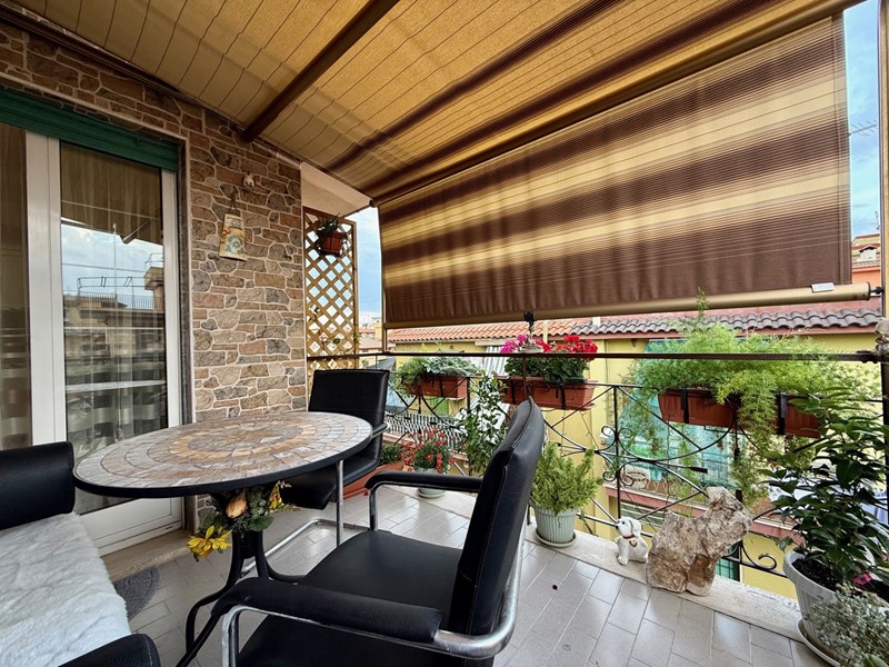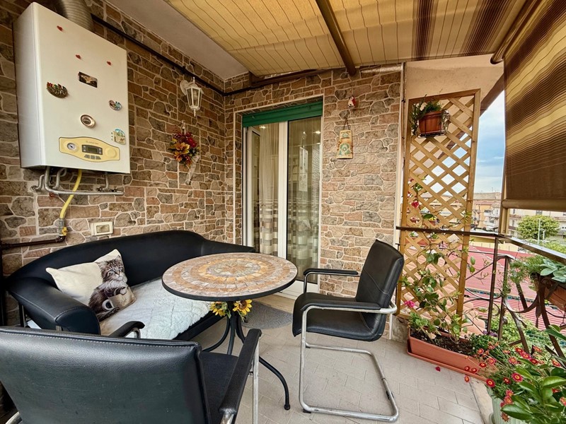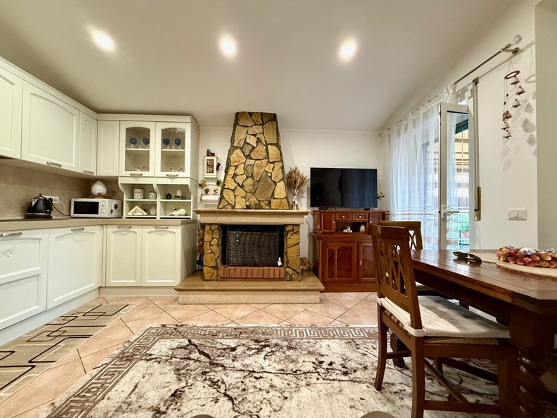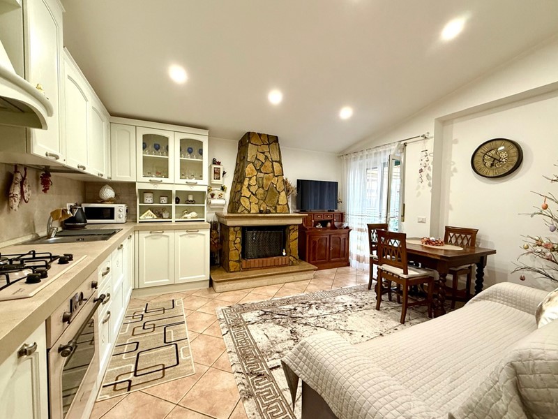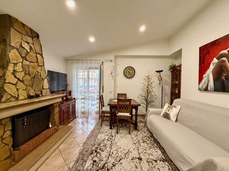 L'immobile è composto da ampio ingresso, salone con angolo cottura e camino, camera matrimoniale, cameretta, servizio con doccia, ripostiglio, due balconi e un terrazzino. In buone condizioni è dotato di pavimenti in ceramica, finestre in alluminio con tapparelle in PVC, riscaldamento autonomo.