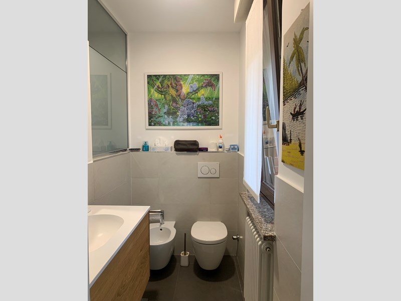 Appartamento in tranquilla zona residenziale, ampio e luminoso, comodo a tutti i servizi. È composto da: 2 spaziose camere da letto, due bagni recentemente ristrutturati, salotto, cucina abitabile, ripostiglio, due ampi balconi, cantina, box auto doppio, curato giardino condominiale.