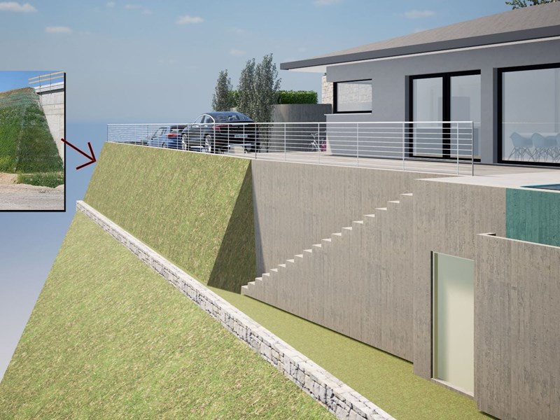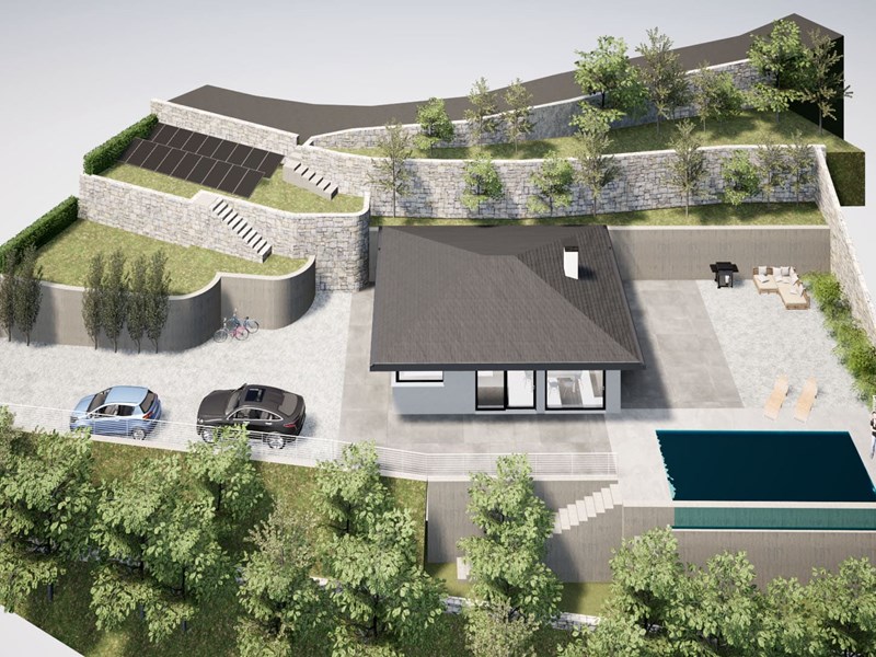 Vendiamo il terreno di 860 m2,( la casa al suo interno dovrà essere necessariamente demolita a nostre spese,per causa difformità edilizia, prima di poter vendere il terreno ) dove il medesimo si trova in zona collinare con esposizione/vista fantastica sul magnifico Lago di Garda, con la possibilità edificatoria di una villa su unico piano, di 80 m2 con relativo fotovoltaico + piscina da 31 m2 + varie modifiche dei terrazzamenti/terrapieni ivi presenti.