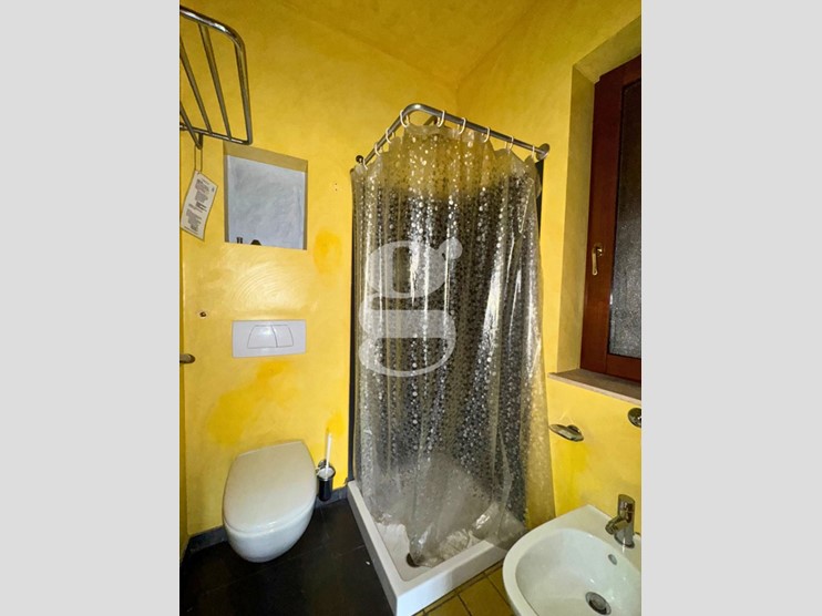 Il bagno è diviso in due pratiche aree: una con lavabo, l'altra con doccia, WC e bidet, in un ambiente funzionale e curato.