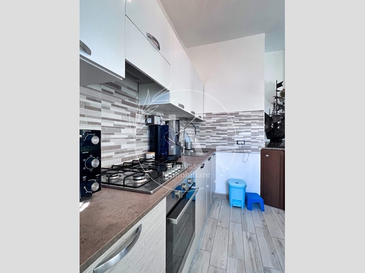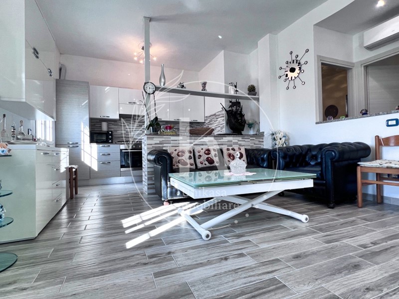 Ingresso nella luminosa zona giorno con angolo cottura, ampia camera matrimoniale, una seconda camera da letto e un bagno finestrato.