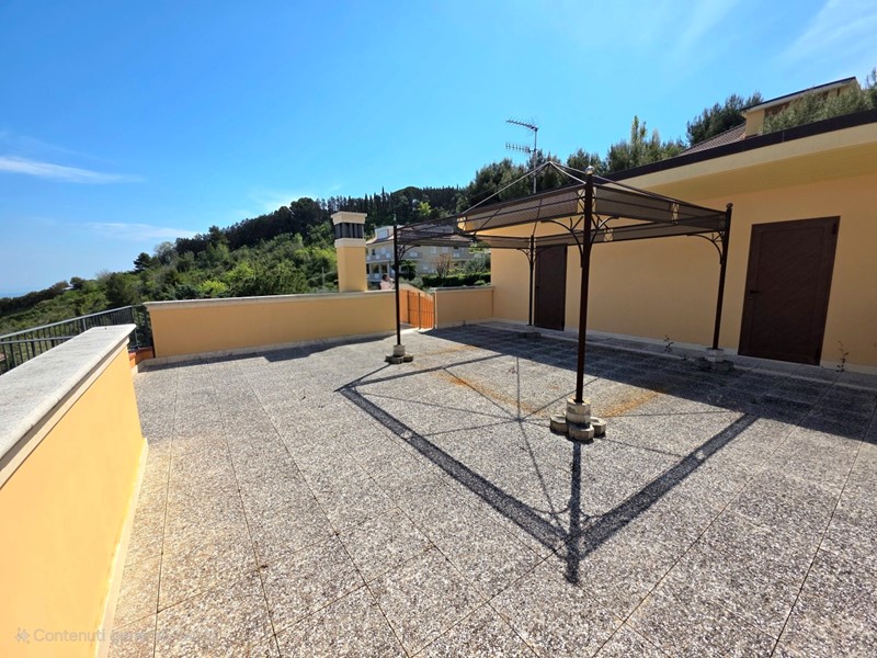 COLONNELLA - in posizione collinare a circa 2 chilometri dal mare, casa cielo-terra indipendente. E' composta da un pian terreno con due garages di circa 40 mq ed un fondaco di 60 mq circa; il primo piano di circa 145 mq ha ingresso su soggiorno, cucina abitabile, due camere matrimoniali di cui una con bagno finestrato, una cameretta, una lavanderia, un secondo bagno con finestra; al piano secondo vi è appartamento di circa 145 mq, al grezzo da rifinire; il terzo piano a destinazione soffitta è di circa mq 34 con ampio terrazzo. Completano la proprietà un giardino di mq 150 circa ,balconi per complessivi 24 mq e terrazzi per complessivi 110 mq. L'immobile è completamente recintato con cancello automatico, ha ottime rifiniture, infissi in doppio vetro e legno, zanzariere, portone blindato, tende parasole. Riferimento agenzia 6830 DiLeoImmobiliare
