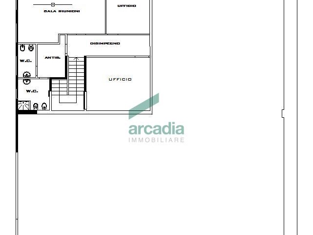 Il piano primo, sviluppa una superficie di circa 100 mq dedicati ad uffici e sevizi; i due piani sono tra loro collegati da una comoda scala interna.