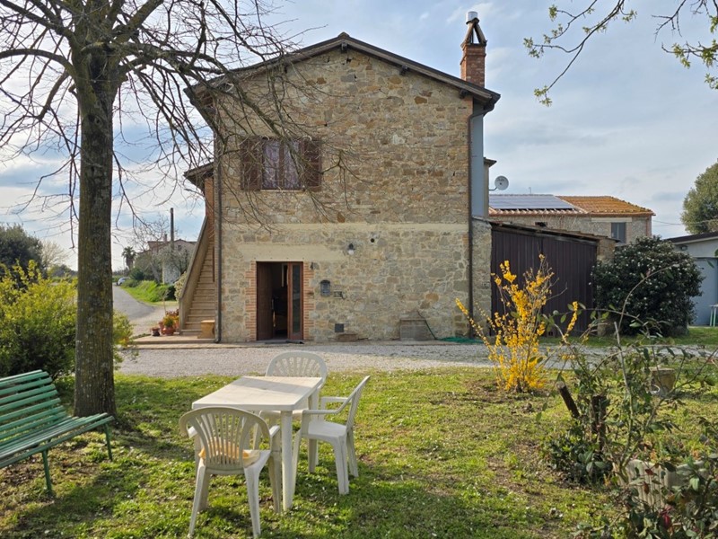 Acqua comunale, pozzo, due camini. una stufa a pellet, termosifone e caldaia a gas ( GPL) per il riscaldamento. Completa la proprietà un annesso di nuova costruzione con garage e cantina, un pollaio, una legnaia e una antica ed ampia cantina scavata nella roccia. Ottimo terreno pianeggiante con circa mezzo ettaro di uliveto e oltre 6ha di seminativo. Accesso comodissimo dalla strada provinciale. Una perfetta situazione per chi vuole abitare nella bellissima campagna ma senza essere isolata.