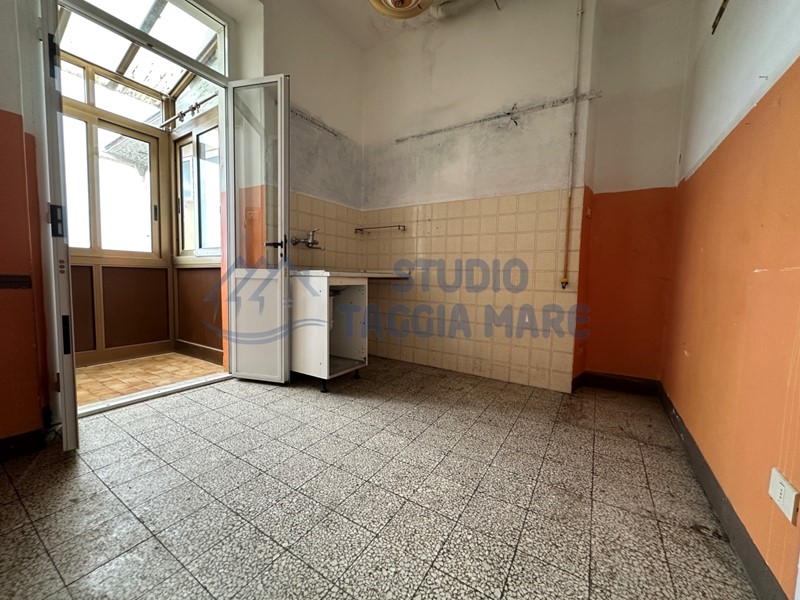 Proponiamo ottima soluzione per chi è alla ricerca di un'immobile comodo a tutti i principali servizi del paese, grazie alla sua ubicazione potrebbe essere un ottima casa vacanza ma anche ottima casa per residenti. L'alloggio è indipendente da terra cielo, doppia esposizione e splendida vista mare. Composto da ingresso al piano terra dove troviamo un comodo ed ampio ripostiglio, una comoda scala ci porta al piano superiore dove veniamo accolti da una sala, cucina, due camere e bagno. Vista mare. Internamente si presenta da ristrutturare, mentre l'esterno è già sistemato. Termo autonomo.