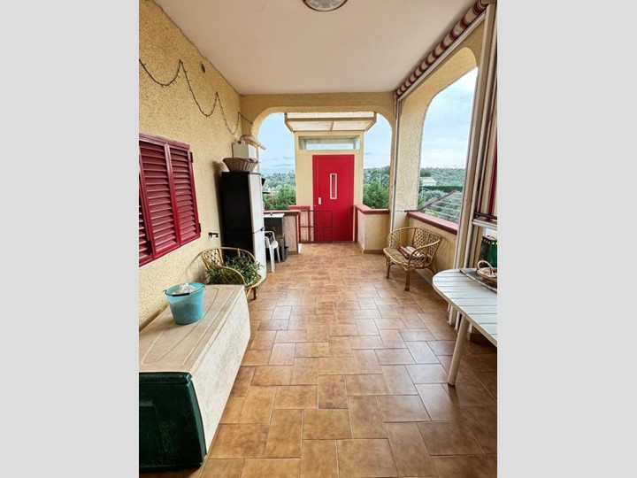 Sviluppa una superficie interna di 108 mq ed è così disposta: ingresso in ampia veranda coperta, comodo soggiorno con camino ed accesso a balcone, cucinotto, tre camere da letto e bagno.