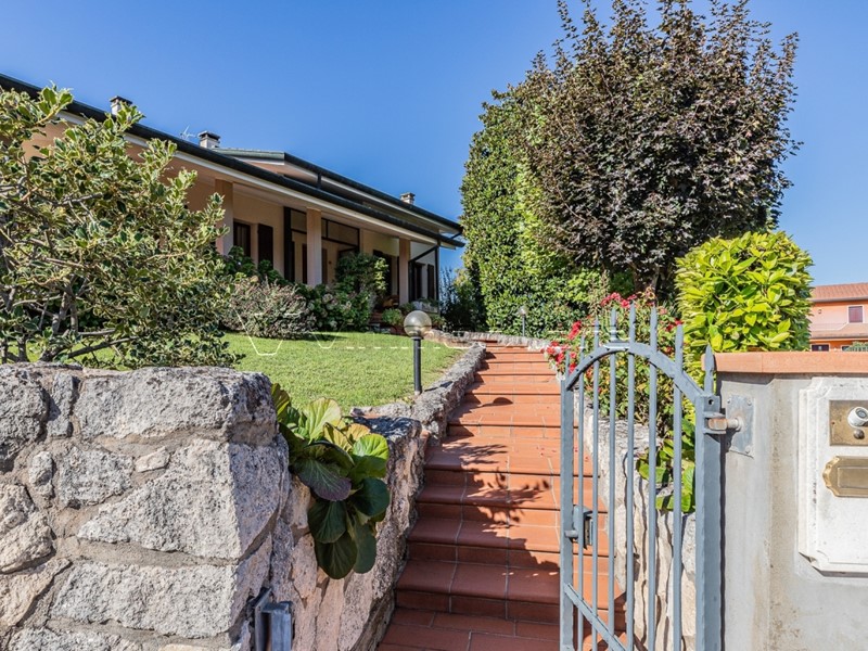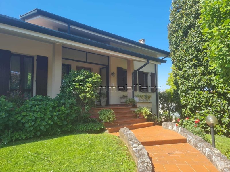 L'immobile è circondato da un ampio giardino di 700mq e le sue ampie terrazze offrono una visione panoramica sul paese e sulla vicina Villa Palladiana.