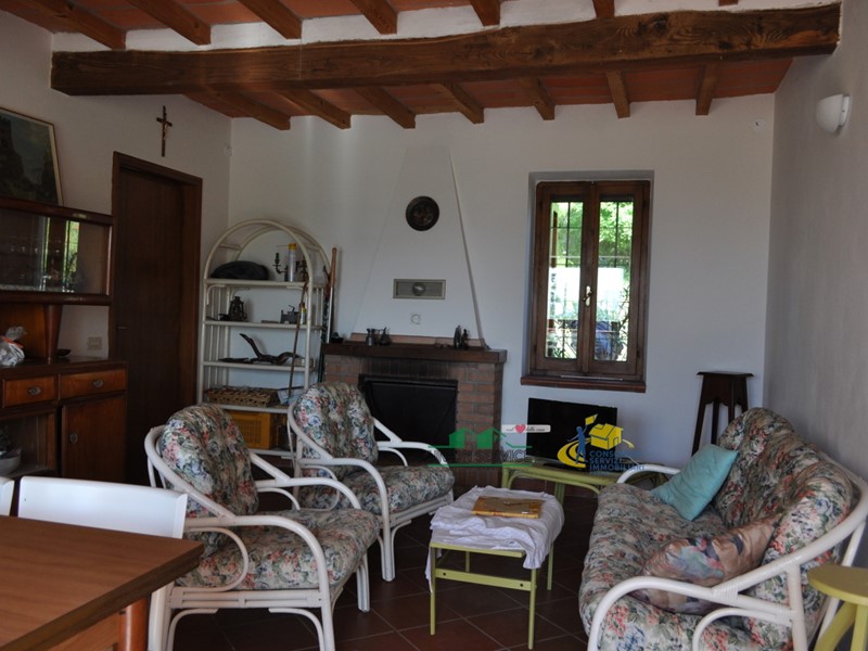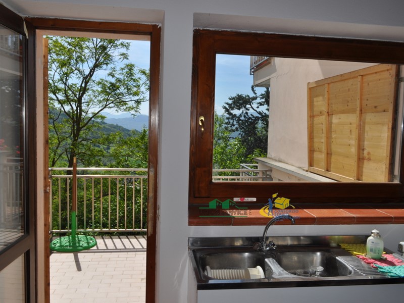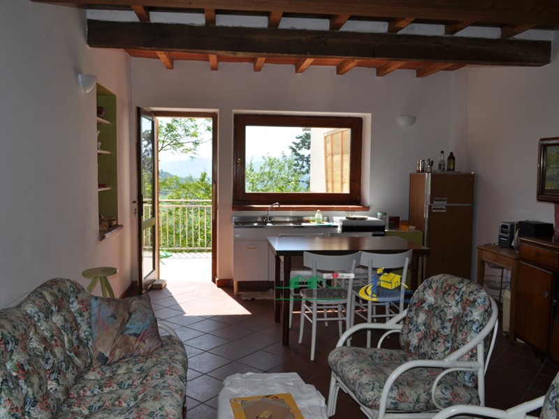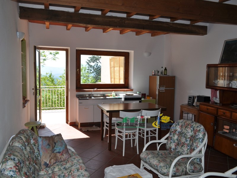E' composto da Piano Terra con zona giorno , angolo cottura, terrazzino con vista sulla vallata, camino e soffitta con travi a vista;
