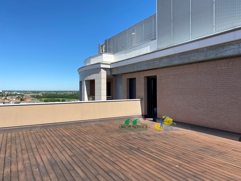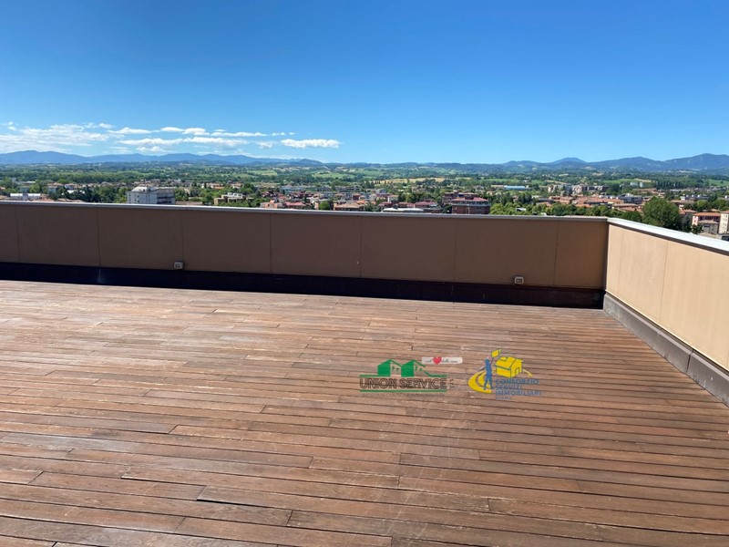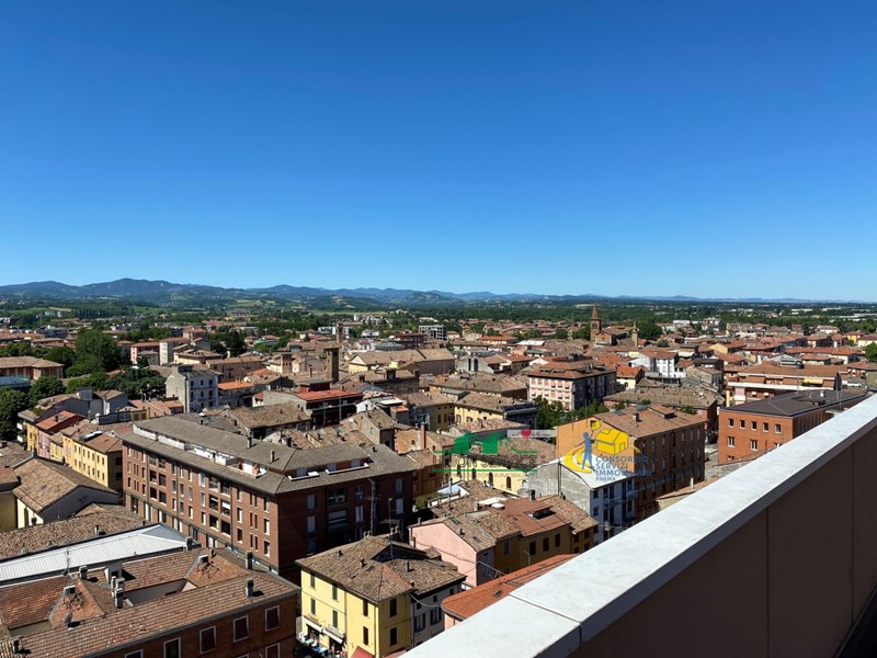 FIDENZA CENTRO: proponiamo in vendita prestigioso attico al 12° e ultimo piano con stupenda vista panoramica a 360°, dotato di loggia, terrazzi e un grande terrazzo (100 mq).