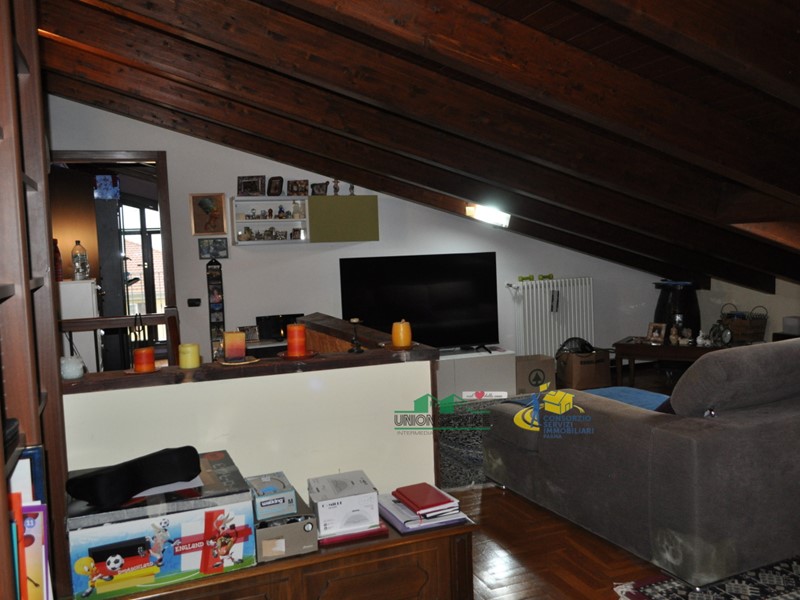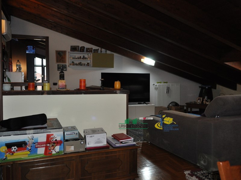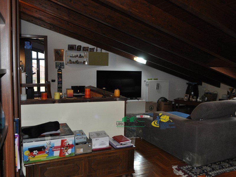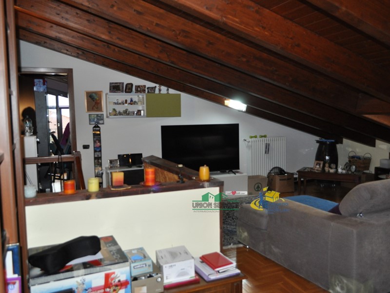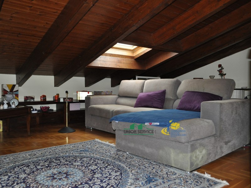 L'immobile sviluppa su 2 livelli: al Primo Piano abbiamo soggiorno con zona cucina e affaccio su ampia loggia, disimpegno, 2 camere (una con cabina armadi) e bagno; al secondo livello sottotetto abbiamo uno ampio salotto, una camera e bagno, quindi possibile ricavare una quarta camera da letto.