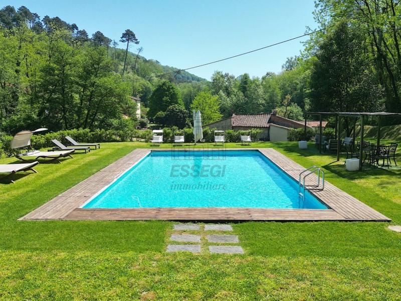 IA04019 - ANTICO FRANTOIO - perfettamente ristrutturato. Situato nella zona ovest di Lucca, in una posizione semi-collinare a meno di 10 km dal Centro Storico di Lucca e a soli 25 minuti dalla Versilia, ESSEGI IMMOBILIARE propone in vendita ESCLUSIVA questo affascinante complesso in stile rustico toscano composto da: un antico casale in pietra ed un annesso suddiviso in 2 unità con ingressi indipendenti, giardino privato 2 piscine e bosco. L'intero complesso è stato sapientemente ristrutturato, preservando le sue caratteristiche originali in particolare quelle delle relative al frantoio.La proprietà si estende su oltre 33.000 mq di terreno e include 2 piscine, un pergolato e un forno all’aperto, creando l'ambiente ideale per godere della tranquillità e della bellezza del paesaggio toscano. Rappresenta la soluzione ideale per una famiglia numerosa, ma anche un'opportunità eccellente come attività di affitto turistico. Attualmente, infatti, viene utilizzata con successo per questo scopo, con ottimi risultati economici.L'abitazione principale, che copre una superficie di circa 340 mq distribuiti su due piani, è così composta:Piano terra: un ampio ingresso in salone luminoso con camino in pietra, che crea un’atmosfera calda e accogliente durante i mesi invernali, cucina spaziosa, tra gli arredi si trovano anche le antiche macine del frantoio, che aggiungono un tocco di autenticità. Completano il piano: una camera matrimoniale con bagno privato.