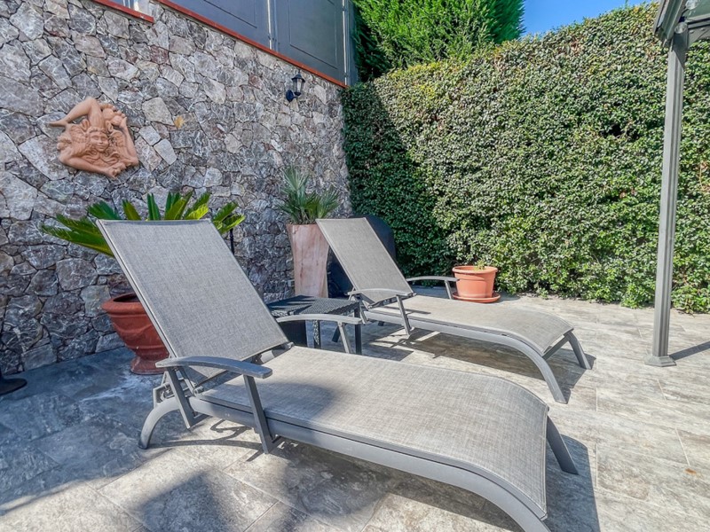 La villa dispone anche di un appartamento indipendente al piano seminterrato con due camere da letto, bagno cucina zona living ed una bella veranda con vista mare.