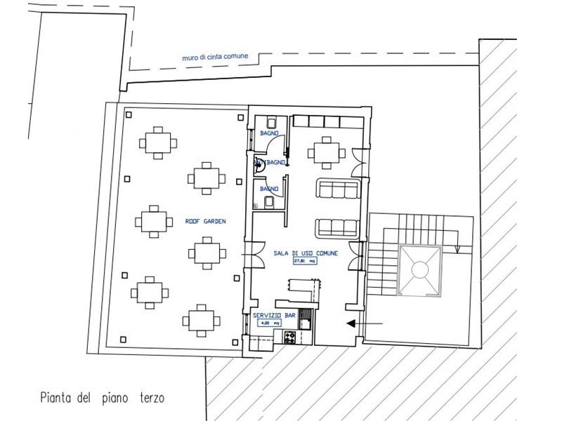 Nell'ultimo livello insistono due sale per ristorazione con zona Bar e terrazzi panoramici .