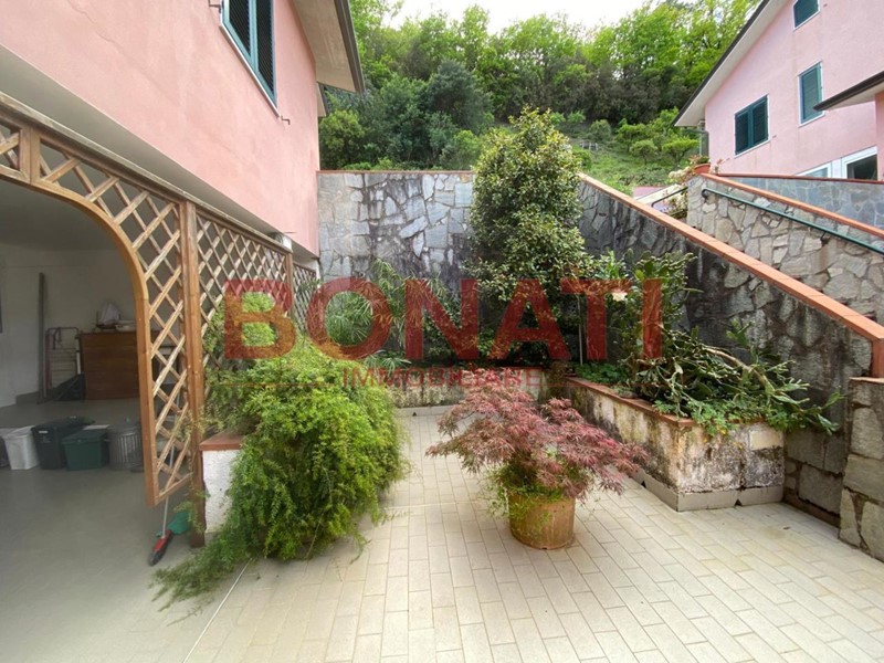 Pian di Follo, in complesso immobiliare di recente costruzione ubicato in zona servitissima, grazie anche alla vicinanza, a 100 mt in linea d' aria, al Nuovo Eurospin, disponiamo di appartamento di vani 5 + doppi servizi, composto da ingresso indipendente tramite ampio terrazza coperta/porticato di circa mq. 90, di proprietà, entrata nel soggiorno con cucina a vista ed accesso alla balconata, disimpegno della zona notte con tre camere da letto, due bagni e ripostiglio. Inoltre l' immobile è dotato di ampio garage comunicante con adiacente cantina dal quale si accede, al coperto, direttamente al vano scala dello stabile. L' immobile si presenta in ottime condizioni generali, dotato di riscaldamento autonomo, minime le spese di condominio, comodo l' ampio parcheggio condominiale.